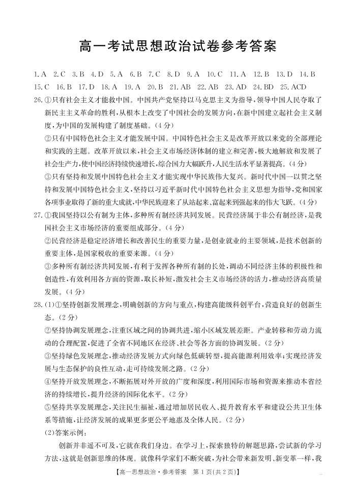 辽宁省辽阳市2024-2025学年高一上学期期末考试政治答案