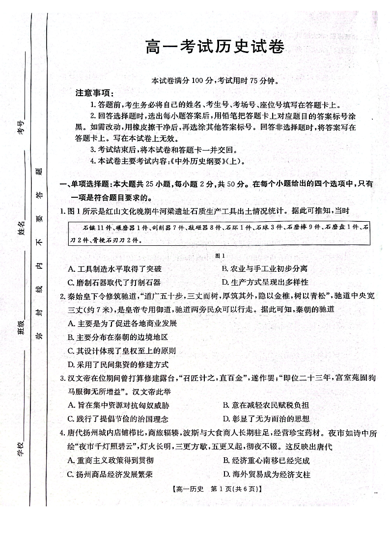 辽宁省辽阳市2024-2025学年高一上学期期末考试历史