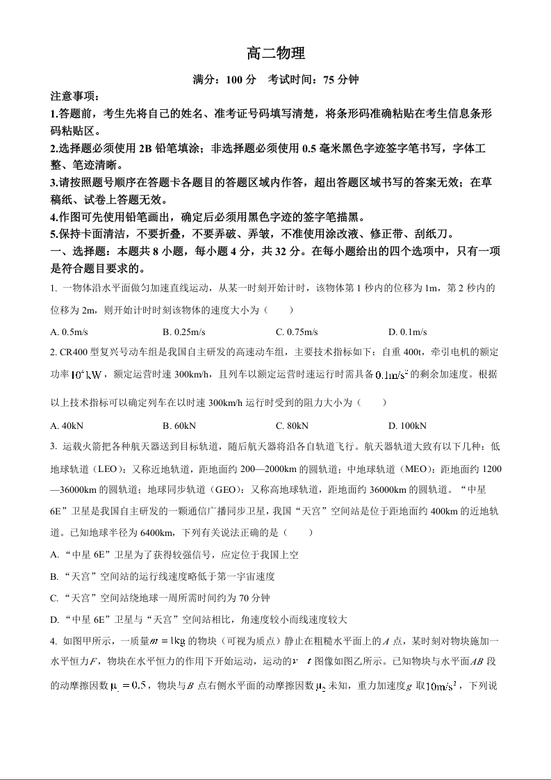 安徽省部分学校2024-2025学年高二上学期开学考试物理+答案