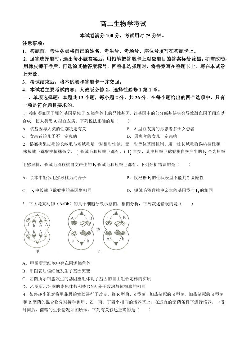 河北省保定市部分高中2024-2025学年高二上学期开学考试生物+答案