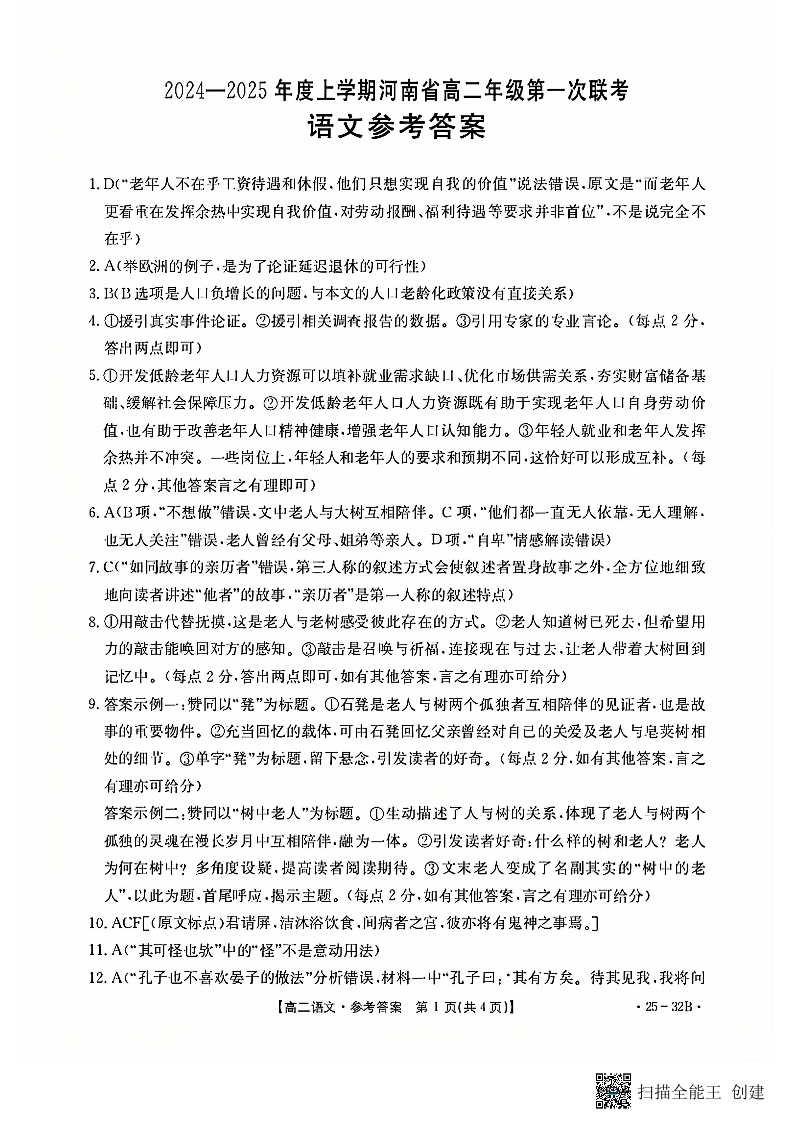 河南省部分学校2024-2015年度上学期高二年级第一次联考语文答案