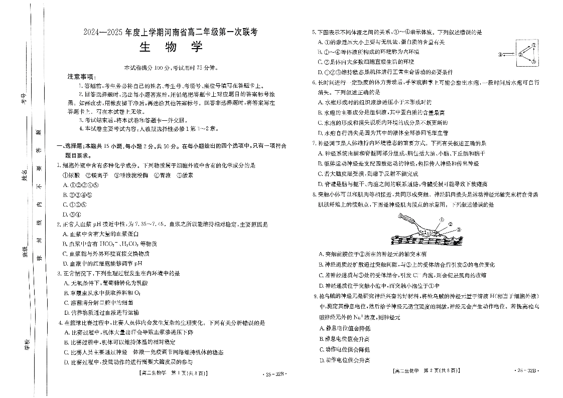 河南省部分学校2024-2015年度上学期高二年级第一次联考生物