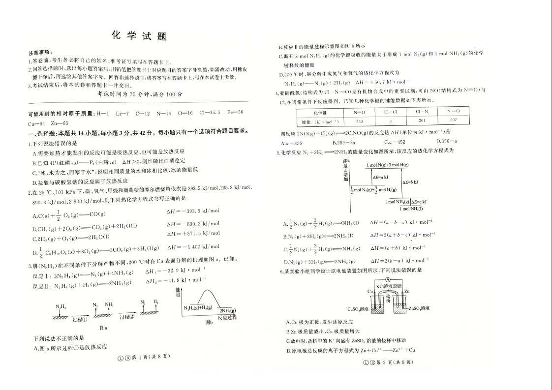 河南省部分学校2024-2025学年高二上学期9月联考化学