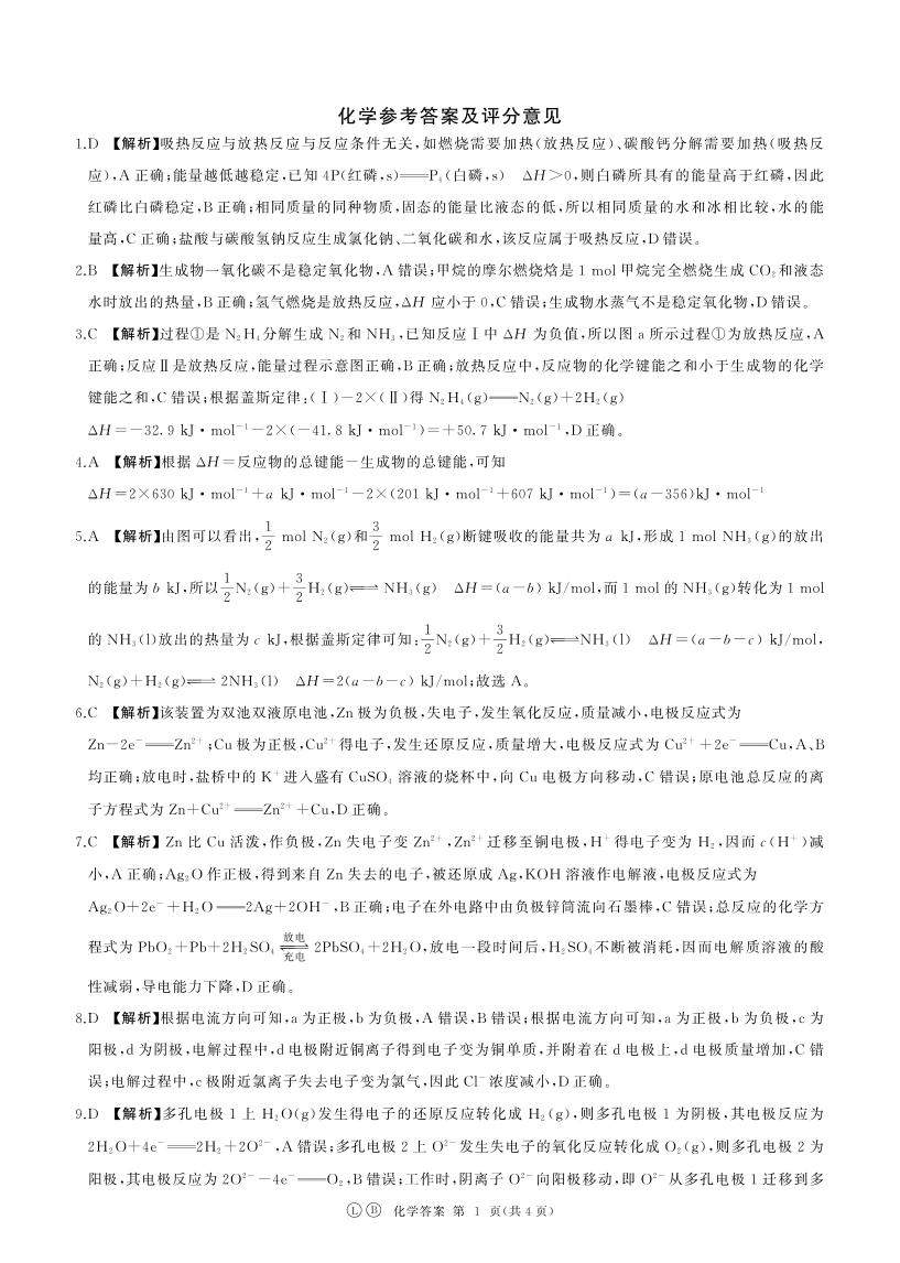 河南省部分学校2024-2025学年高二上学期9月联考化学答案