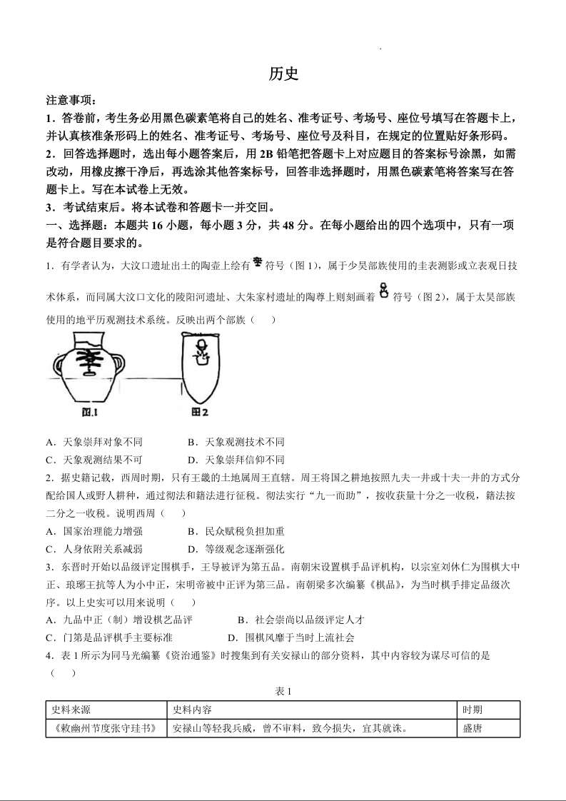 新八省联考2025年云南省高考综合改革适应性演练历史