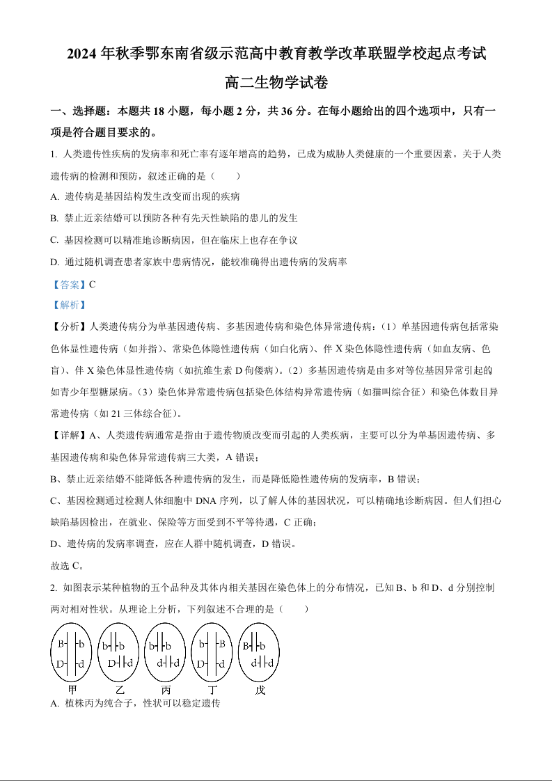 湖北省鄂东南三校2024-2025学年高二上学期开学联考生物(精品解析版)