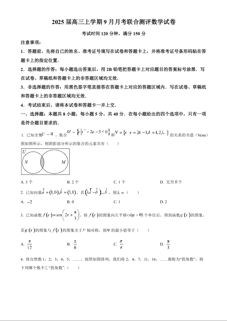 湖北省云学联盟部分重点高中2024-2025学年高二上学期9月联考数学(原卷版)
