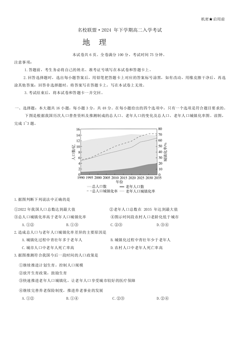 湖南省名校联盟2024-2025学年高二上学期入学考试地理