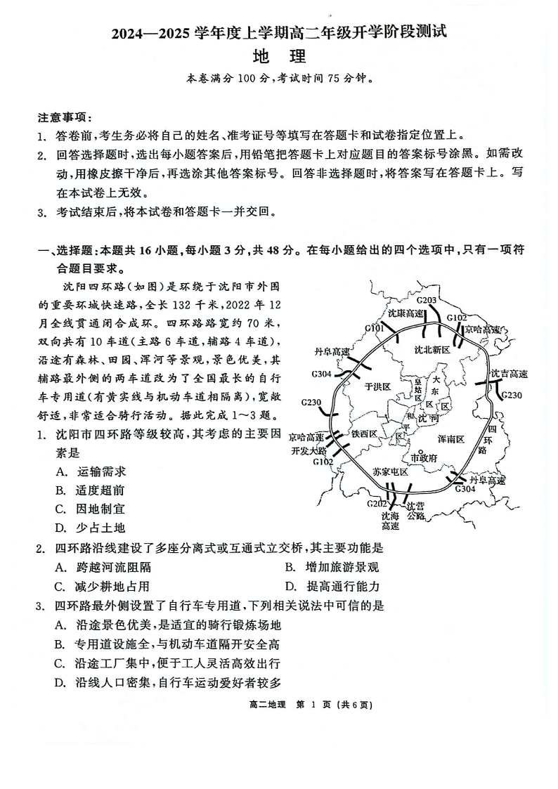 辽宁省部分高中2024-2025学年高二上学期9月开学联合考试地理+答案