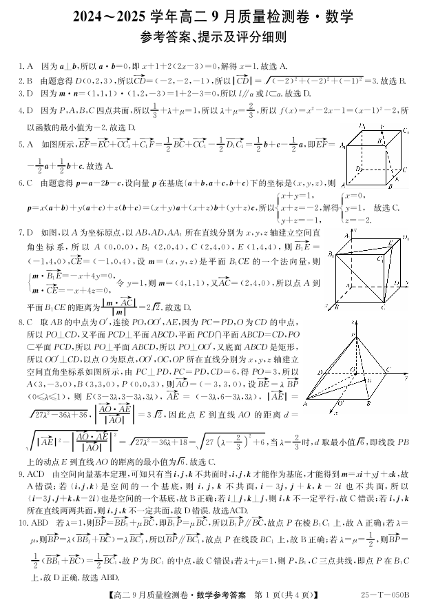 山西省吕梁市部分学校2024-2025高二上学期9月考试数学答案