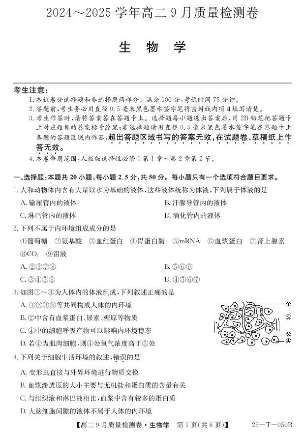 山西省吕梁市部分学校2024-2025高二上学期9月考试生物