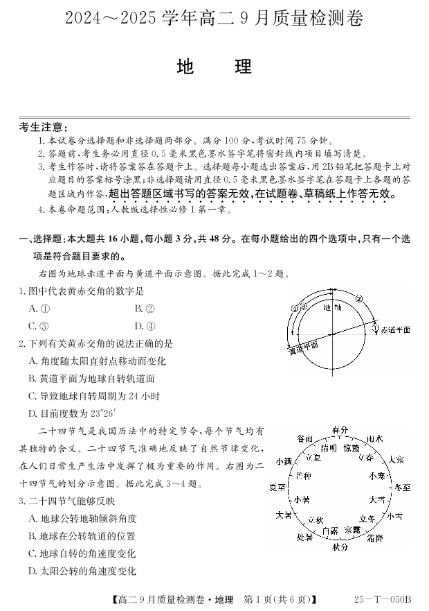 山西省吕梁市部分学校2024-2025高二上学期9月考试地理