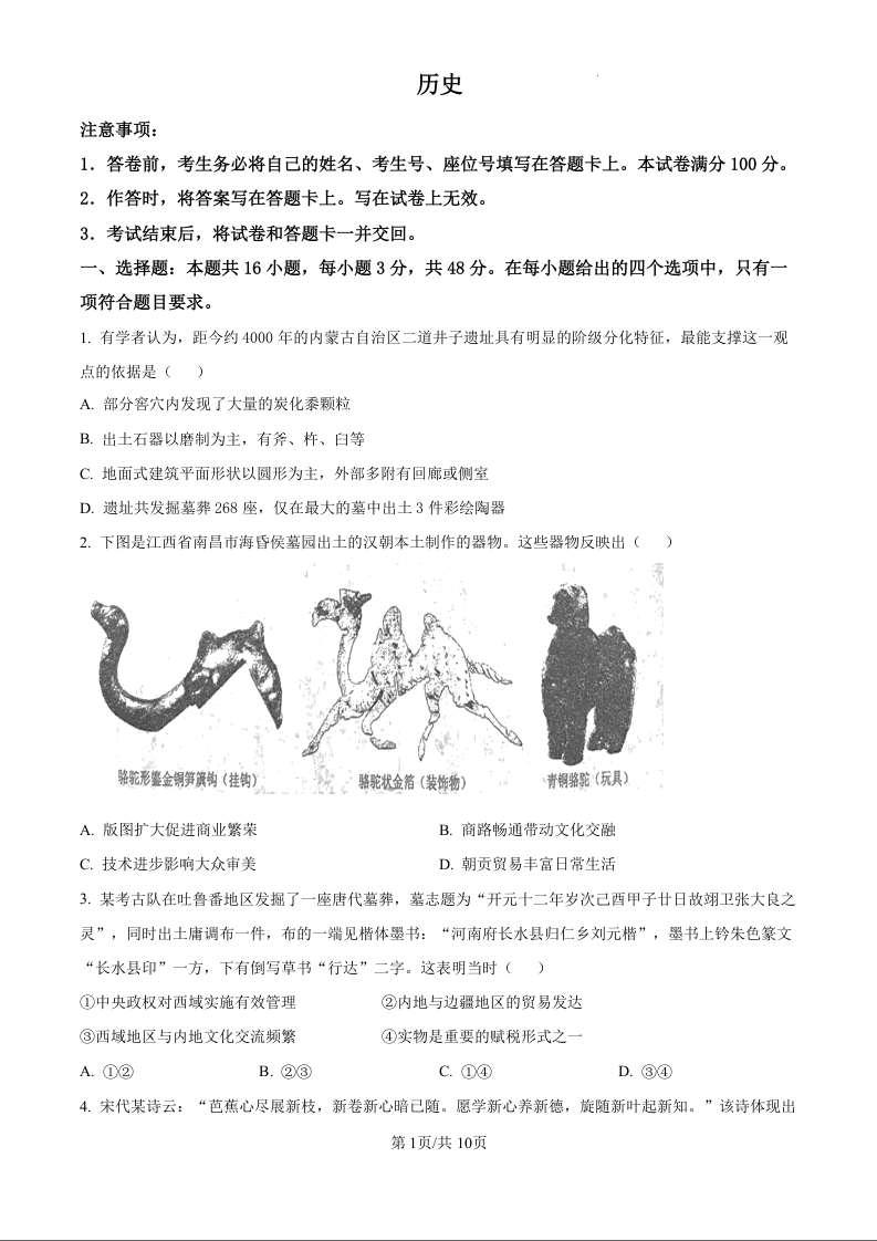 【内蒙古卷】新八省联考2025年内蒙古高考综合改革适应性演练历史