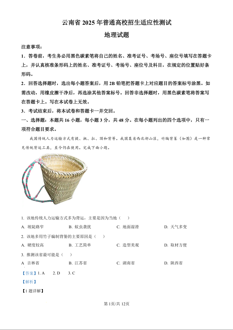 新八省联考2025年内蒙古高考综合改革适应性演练地理(精品解析版)