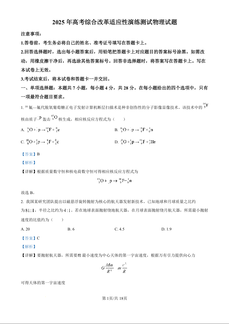 【四川卷】新八省联考2025年内蒙古高考综合改革适应性演练物理(精品解析版)