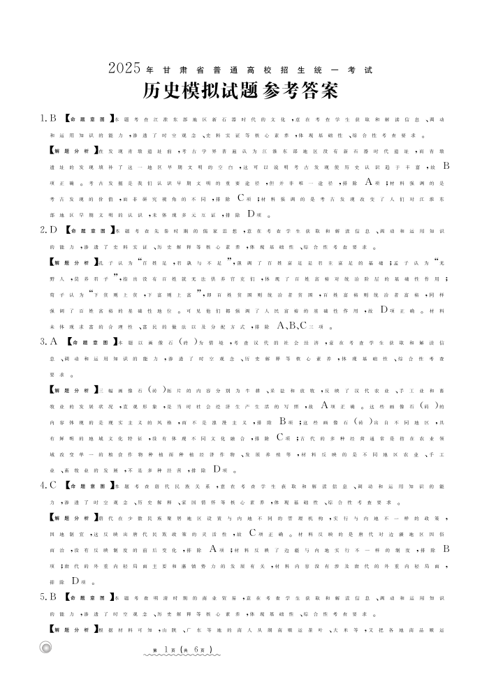 甘肃省白银市部分学校2025届高三上学期1月期末考试历史答案