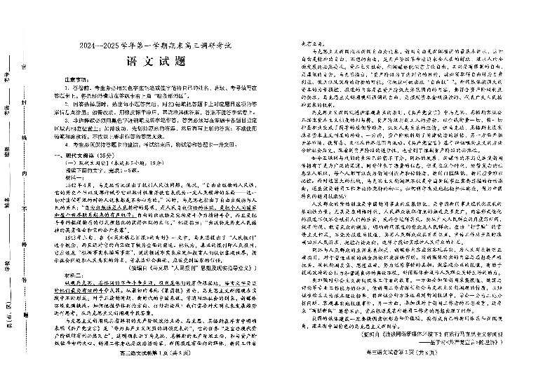 河北省保定市2025届第一学期1月期末高三调研考试语文
