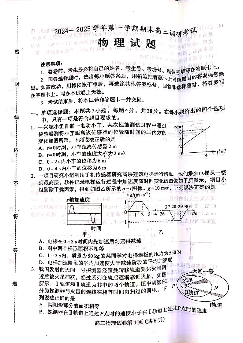河北省保定市2025届第一学期1月期末高三调研考试物理
