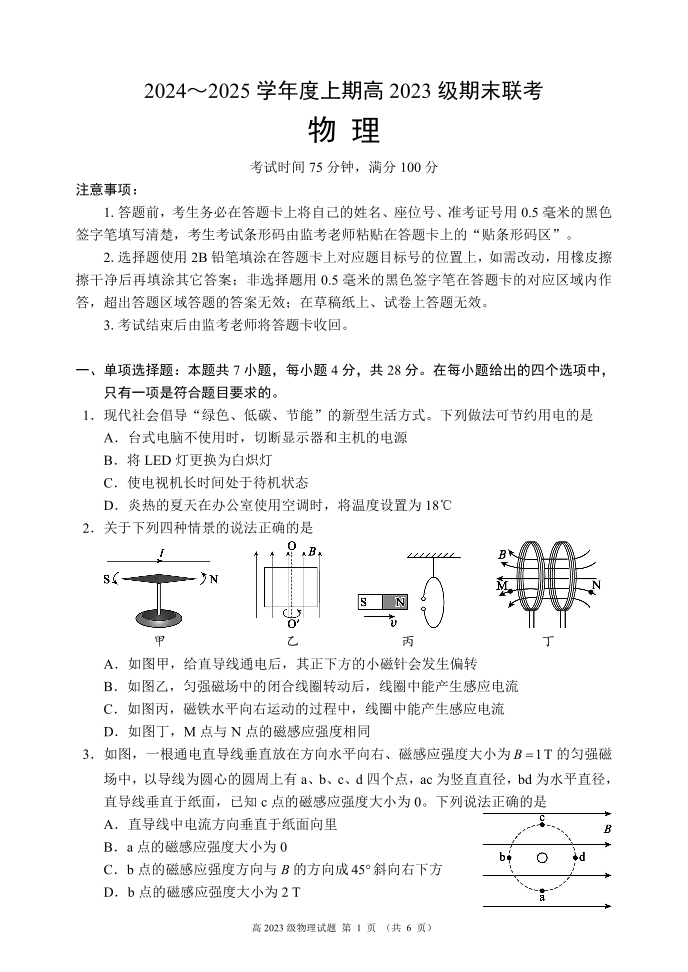 四川省名校联盟2024-2025学年高二上学期期末联考物理