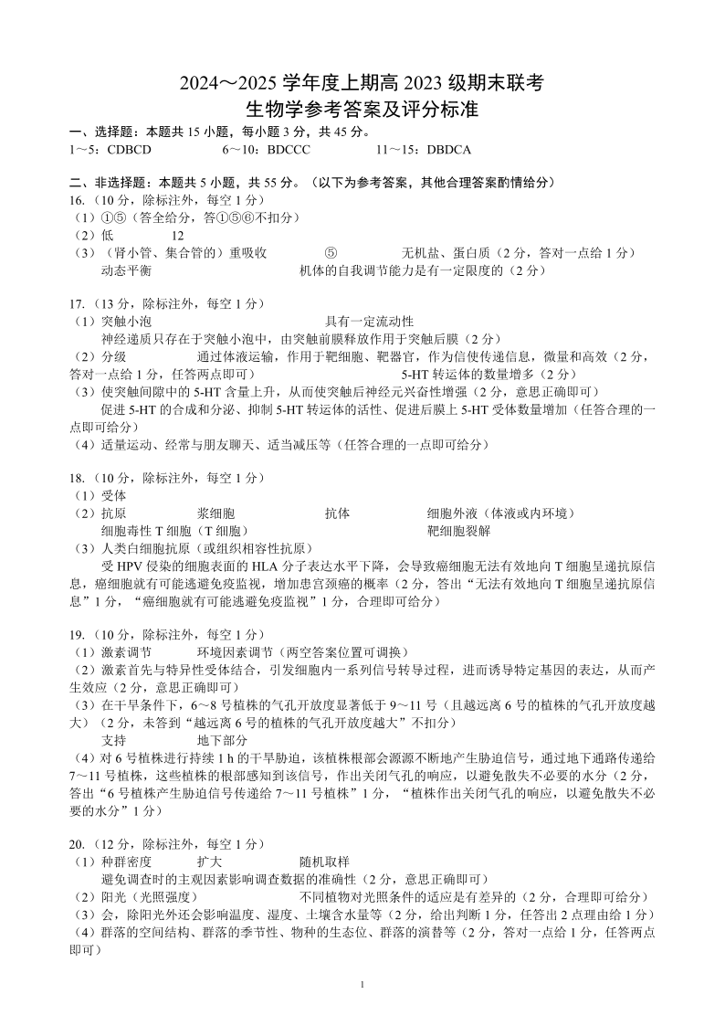 四川省名校联盟2024-2025学年高二上学期期末联考生物学答案