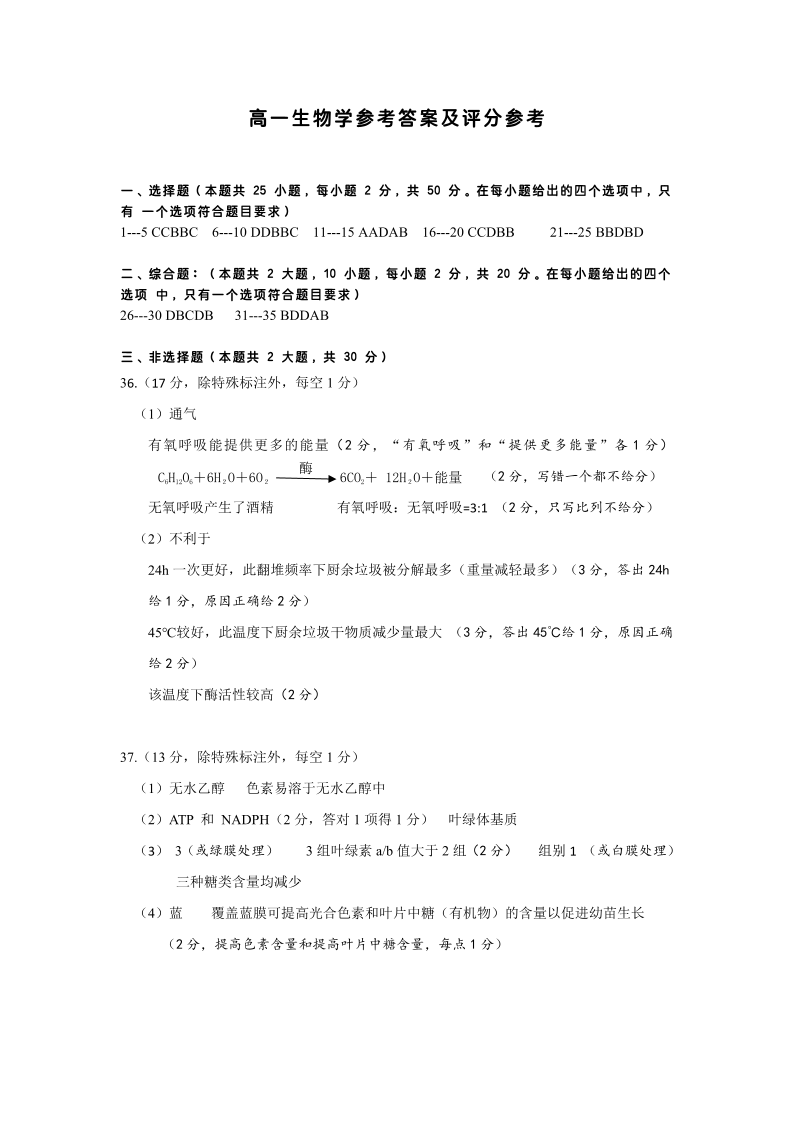 辽宁省沈阳市2024—2025学年高一上学期期末考试生物学答案