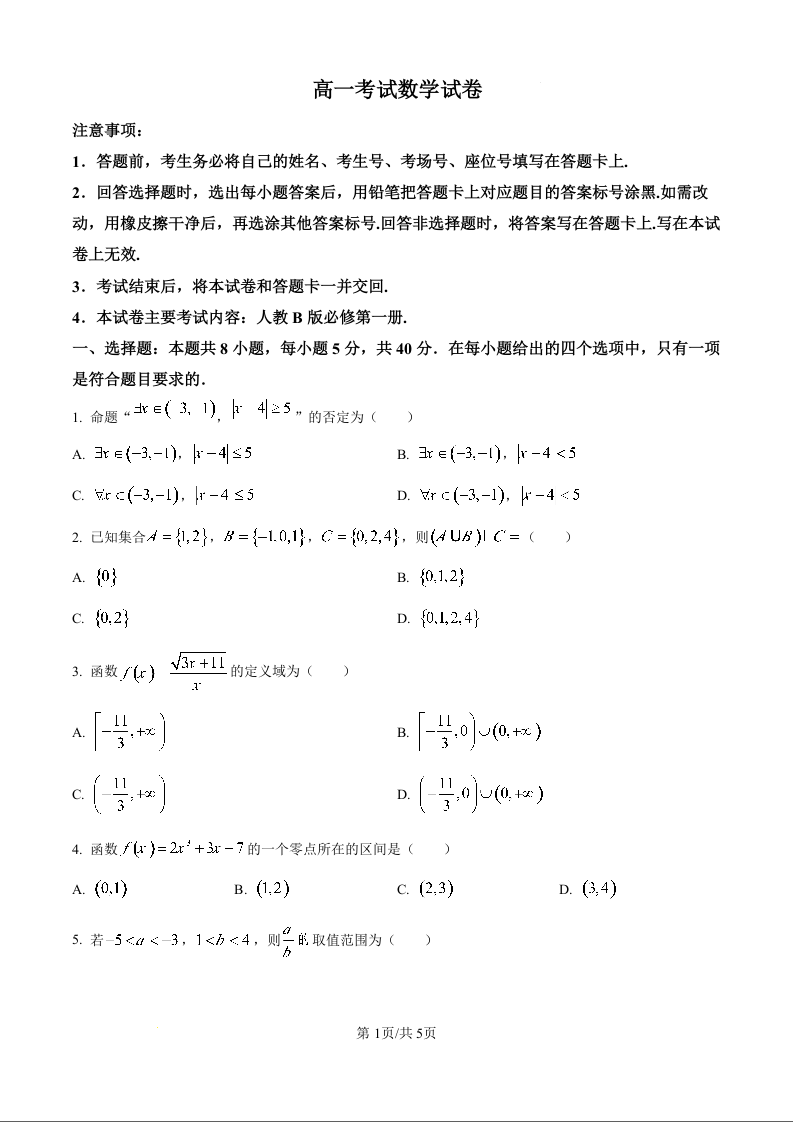 辽宁省辽阳市2024-2025学年高一上学期期中考试数学(原卷版)