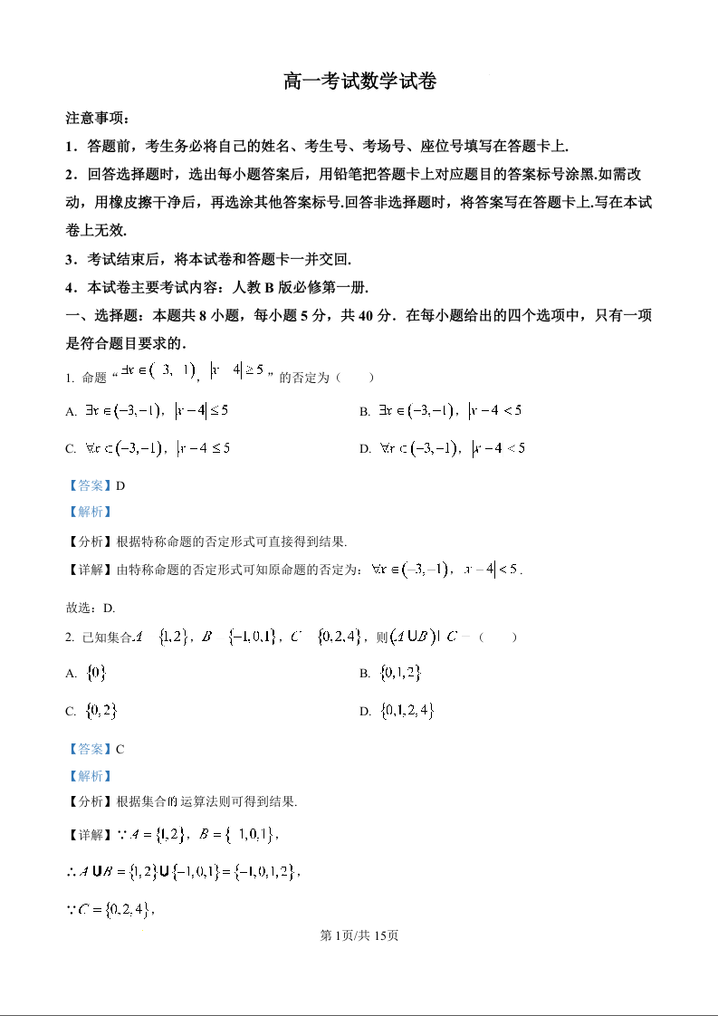 辽宁省辽阳市2024-2025学年高一上学期期中考试数学(精品解析版)