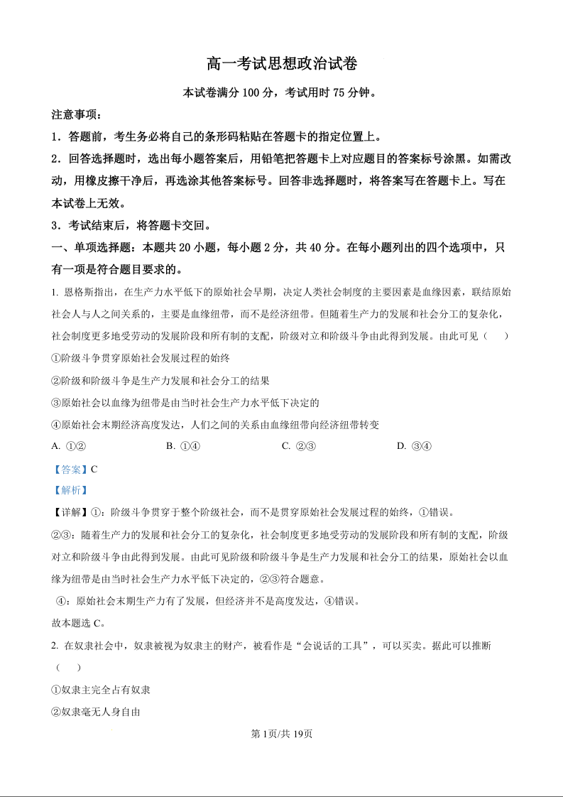 辽宁省辽阳市2024-2025学年高一上学期期中考试政治(精品解析版)