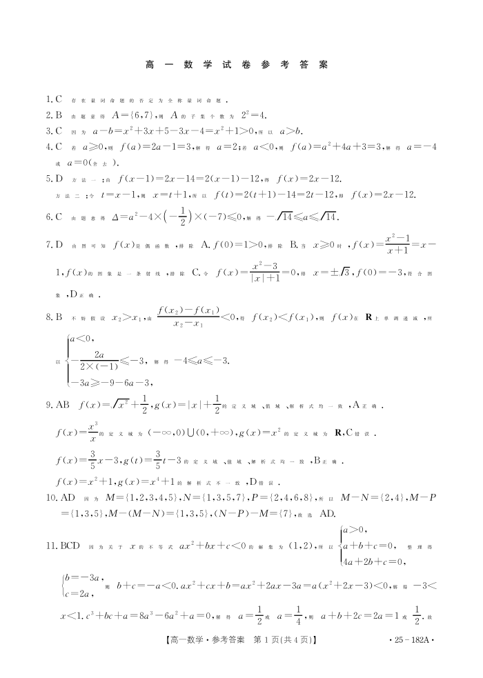 内蒙古赤峰市名校2024-2025学年高一上学期期中联考数学答案