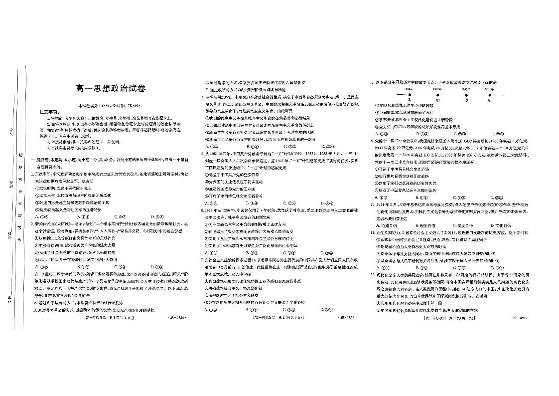 内蒙古赤峰市名校2024-2025学年高一上学期期中联考政治