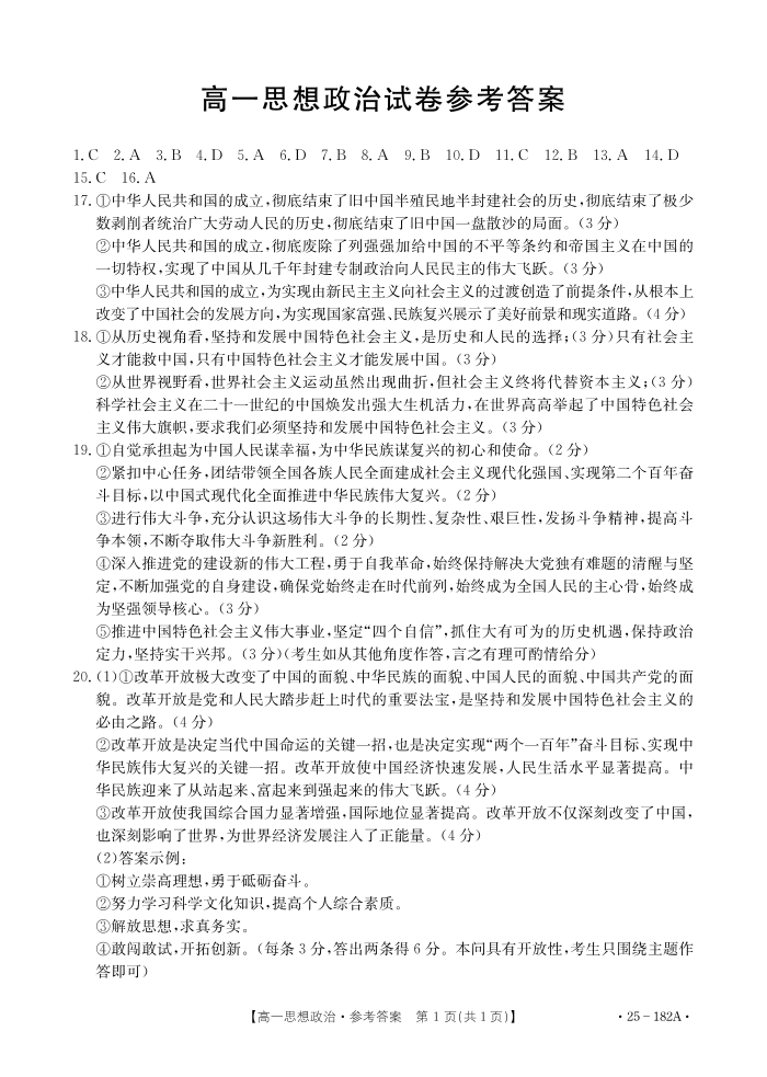 内蒙古赤峰市名校2024-2025学年高一上学期期中联考政治答案