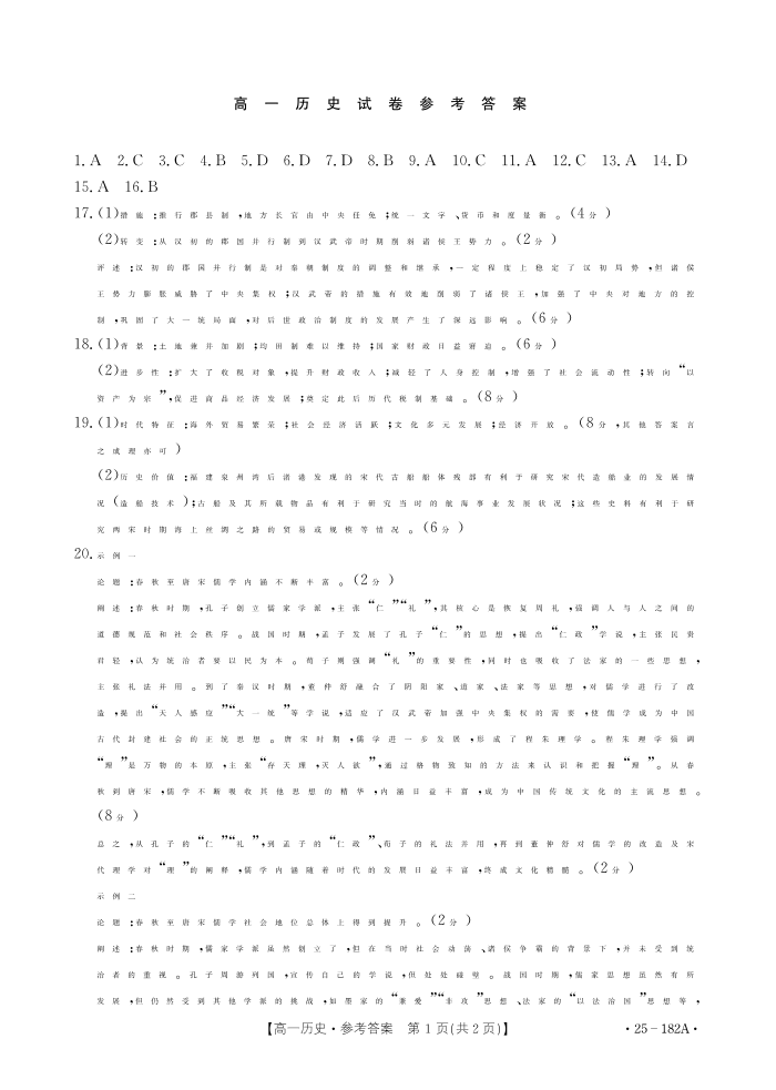 内蒙古赤峰市名校2024-2025学年高一上学期期中联考历史答案