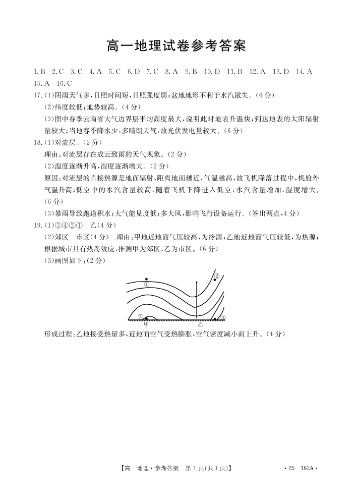内蒙古赤峰市名校2024-2025学年高一上学期期中联考地理答案