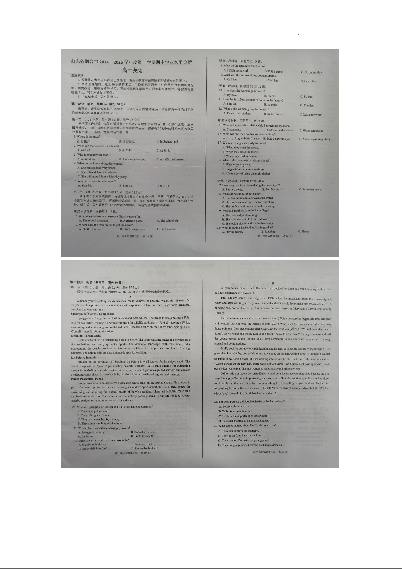 山东省烟台市2024-2025学年高一上学期11月期中考试英语+答案