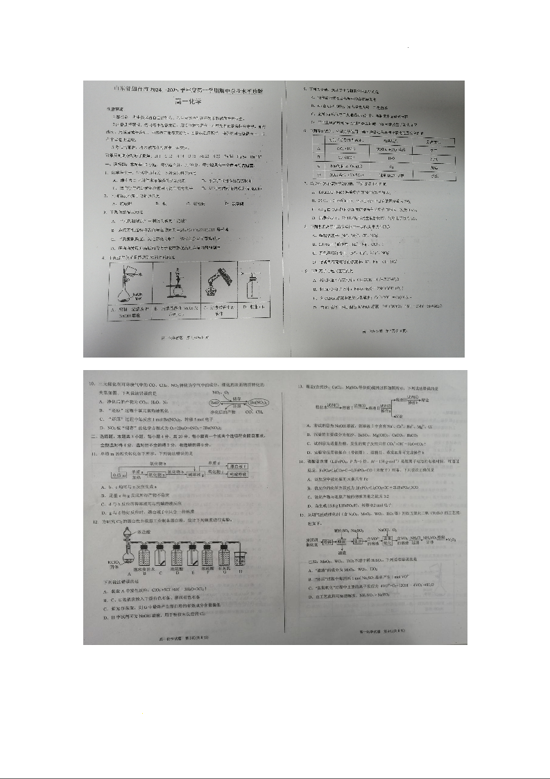 山东省烟台市2024-2025学年高一上学期11月期中考试化学+答案