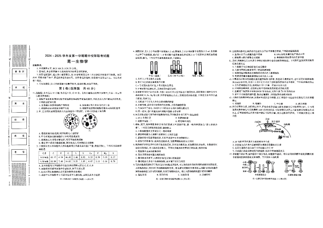 陕西省汉中市2024-2025学年高一上学期11月期中联考生物+答案