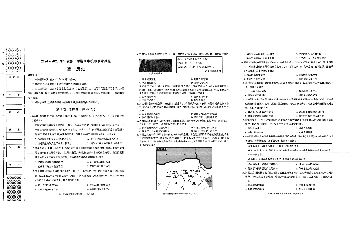陕西省汉中市2024-2025学年高一上学期11月期中联考历史+答案