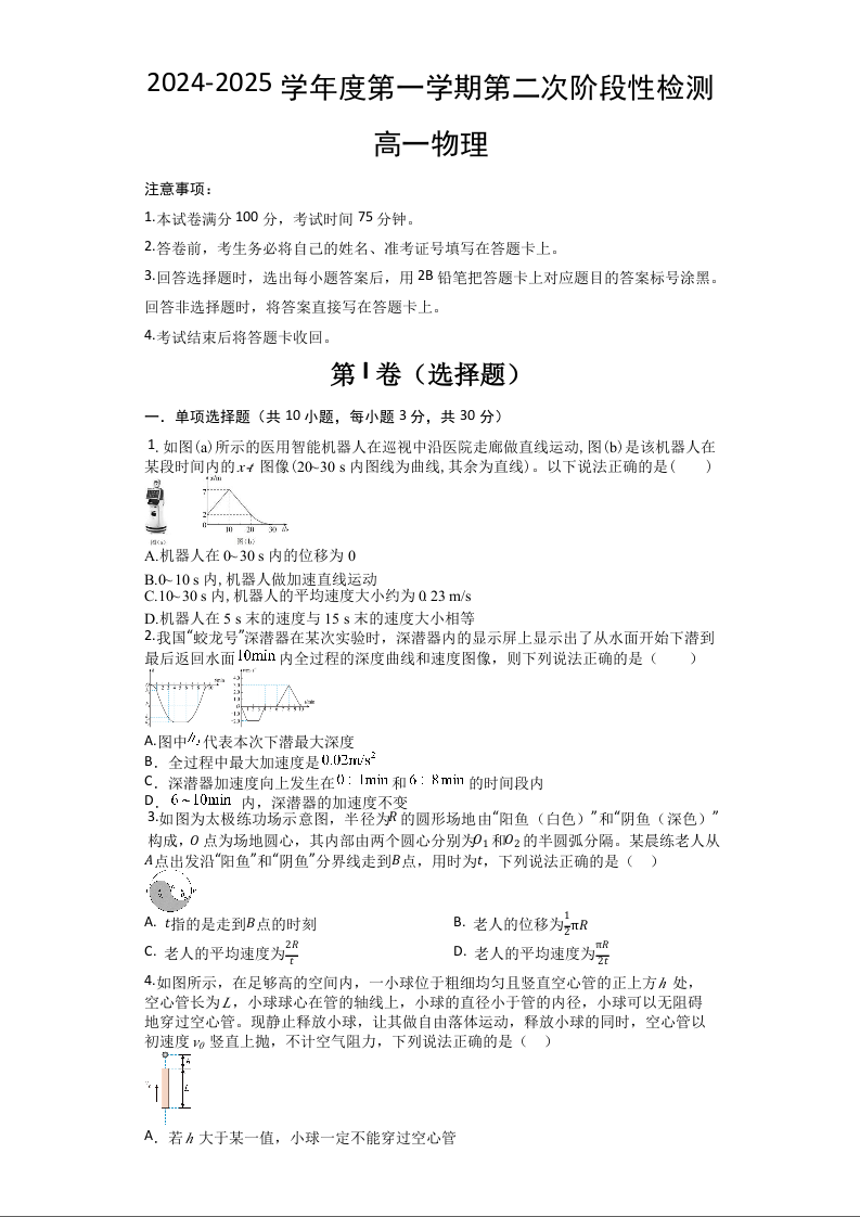 陕西省西安市部分学校联考2024-2025学年高一上学期11月期中考试物理+答案