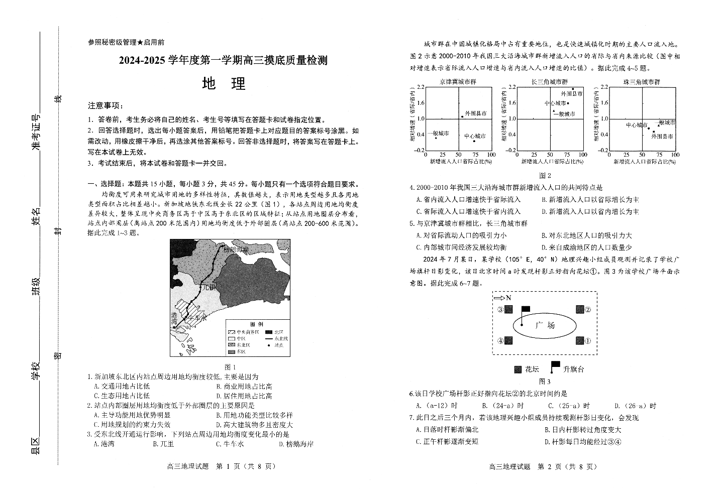 山东省淄博市2024-2025学年第一学期高三期末摸底质量检测地理
