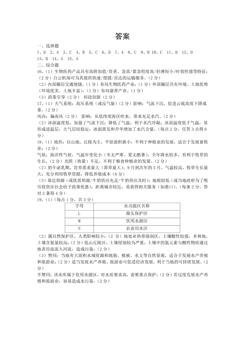 山东省淄博市2024-2025学年第一学期高三期末摸底质量检测地理答案