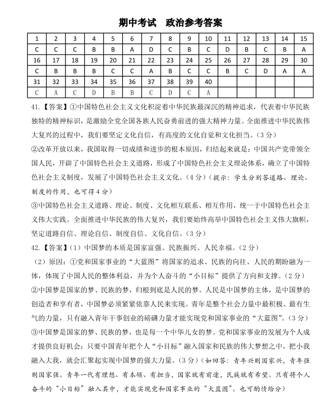 四川省南充高级中学2024-2025学年高一上学期期中考试政治答案
