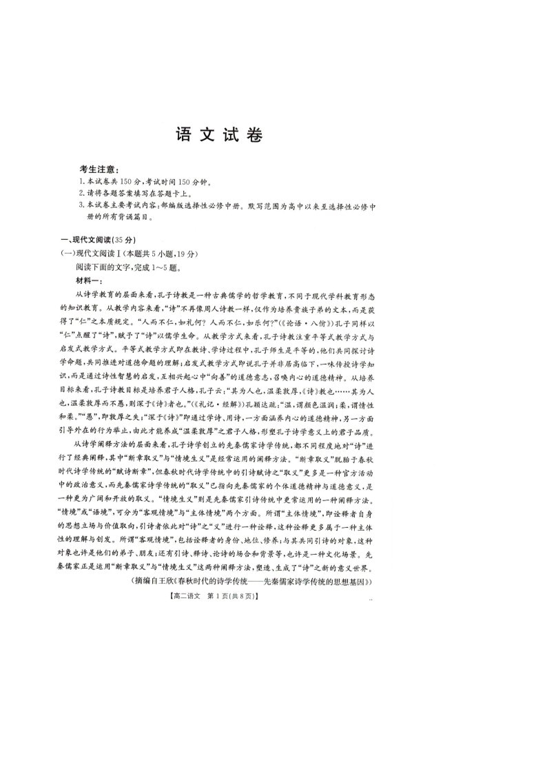 辽宁省抚顺市省重点高中六校协作体2024-2025学年高二上学期期末考试语文+答案