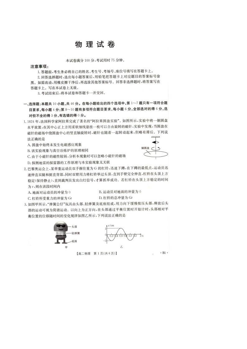 辽宁省抚顺市省重点高中六校协作体2024-2025学年高二上学期期末考试物理+答案