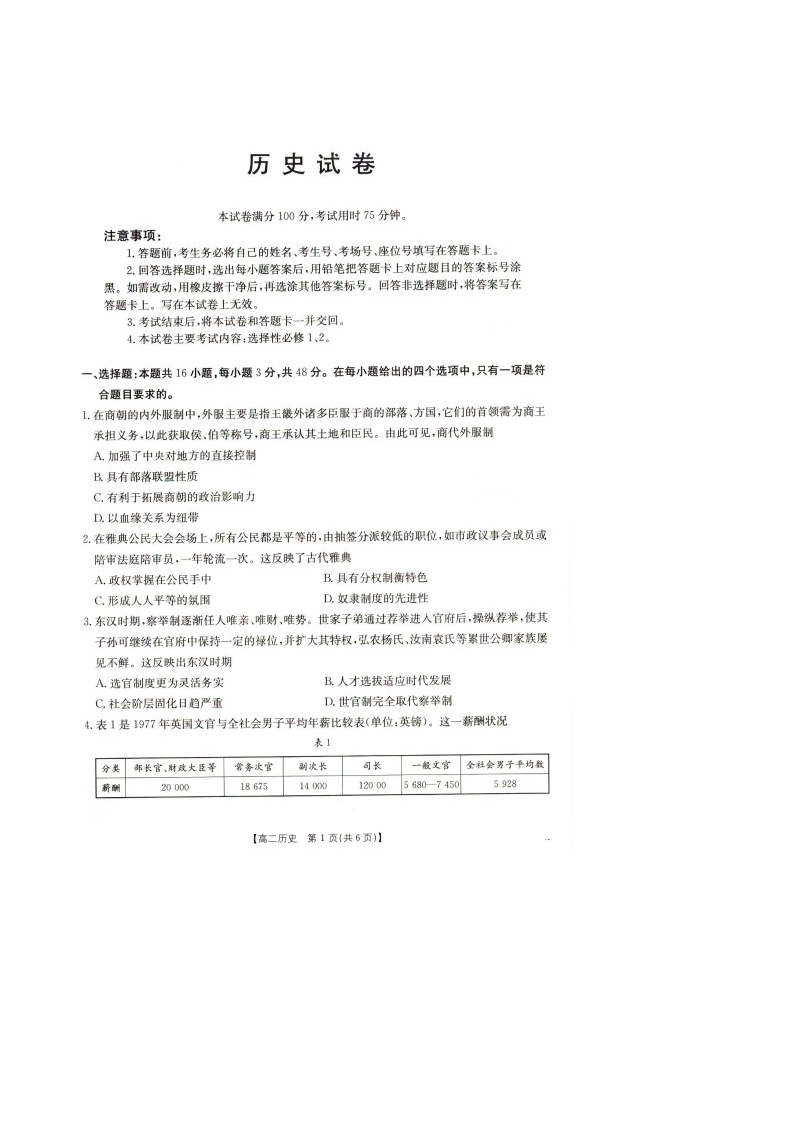 辽宁省抚顺市省重点高中六校协作体2024-2025学年高二上学期期末考试历史+答案