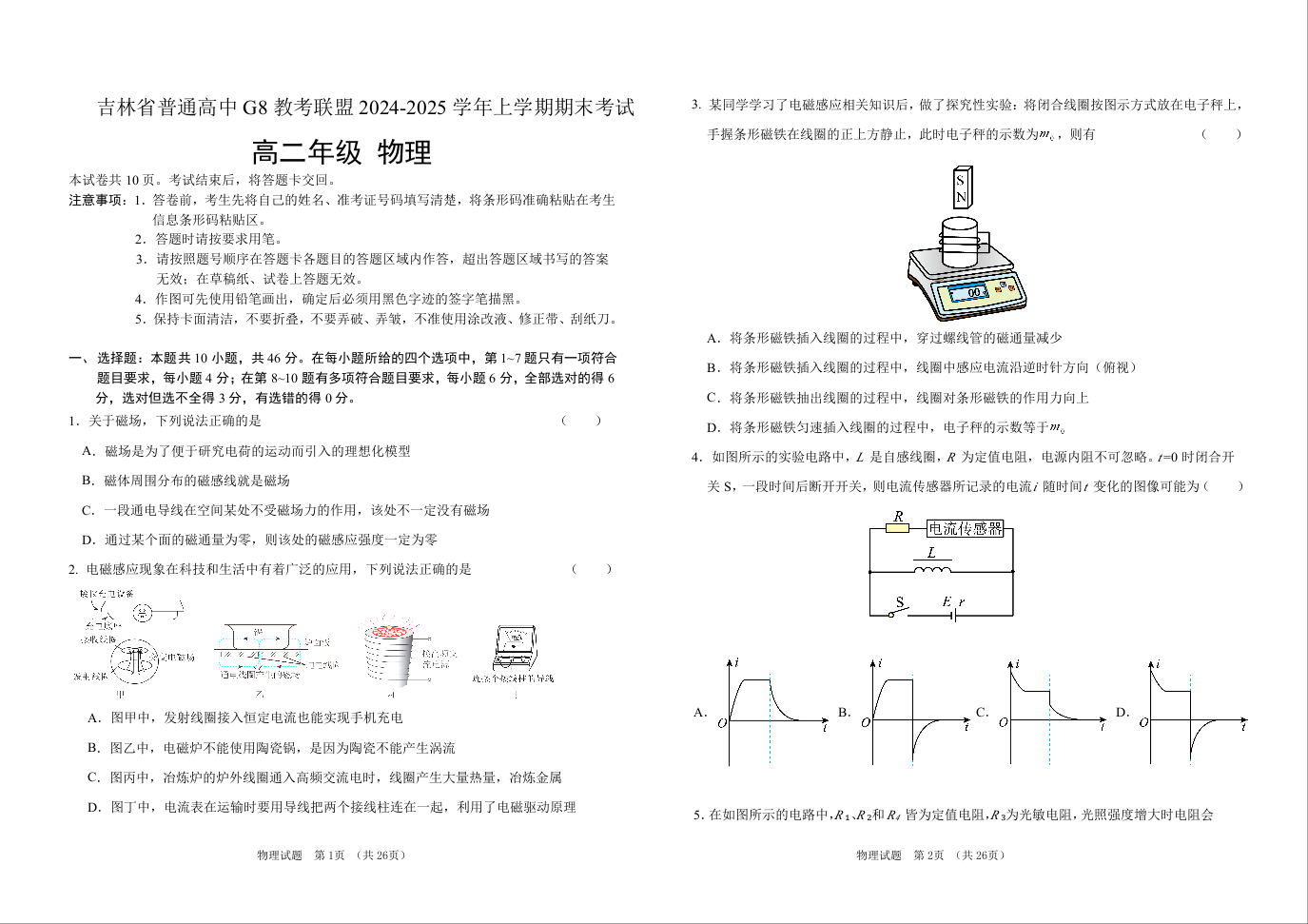 吉林省普通高中G8教考联盟2024-2025学年高二上学期期末考试物理+答案