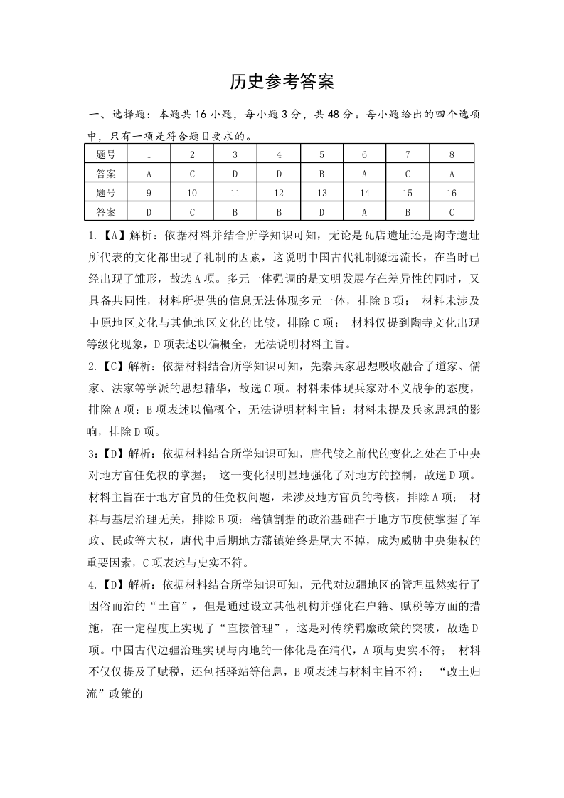 安徽省淮南市和淮北市2025届高三上学期第一次质量检测历史答案