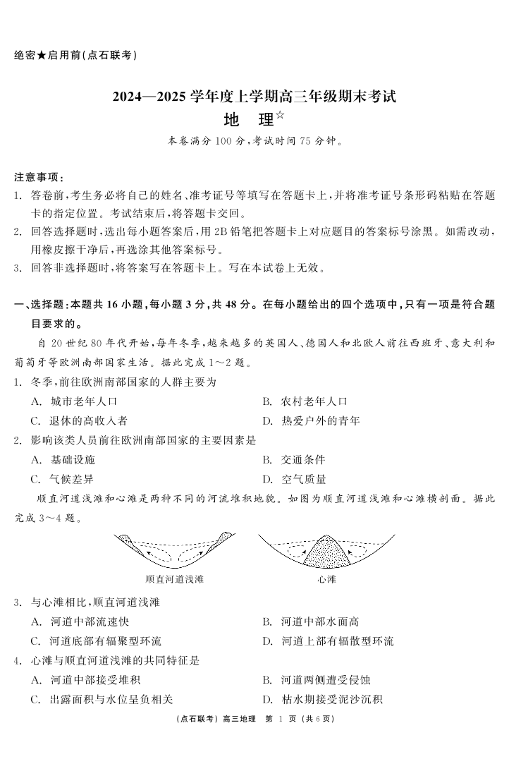 辽宁省点石联考2025届高三上学期1月期末考试地理