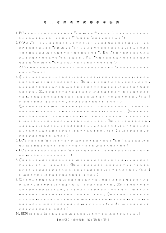 辽宁省辽阳市2025届高三上学期1月期末考试语文答案