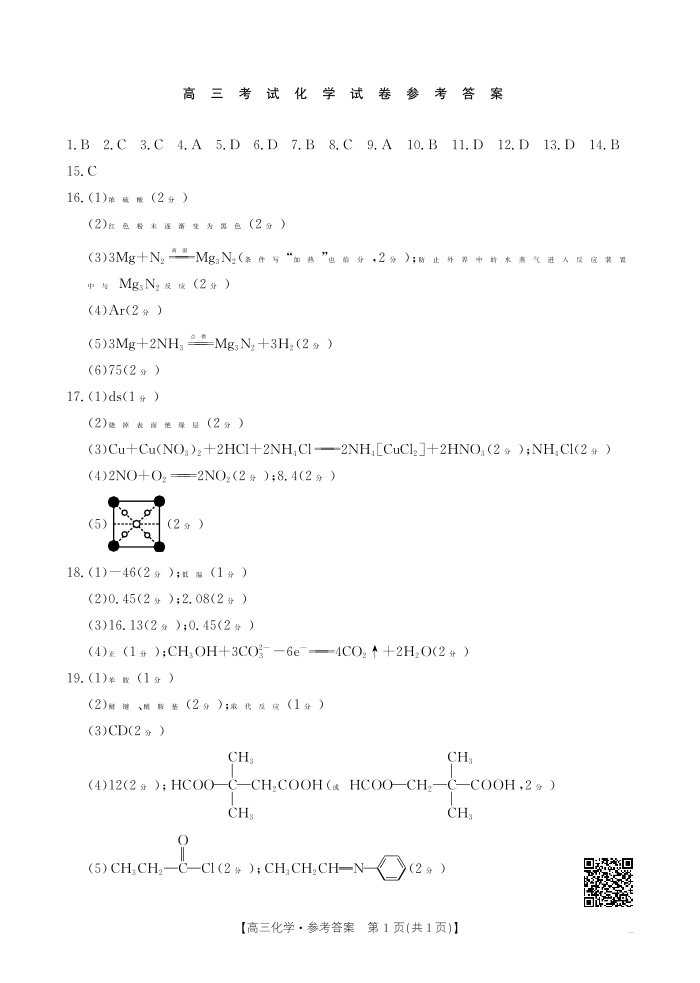 辽宁省辽阳市2025届高三上学期1月期末考试化学答案
