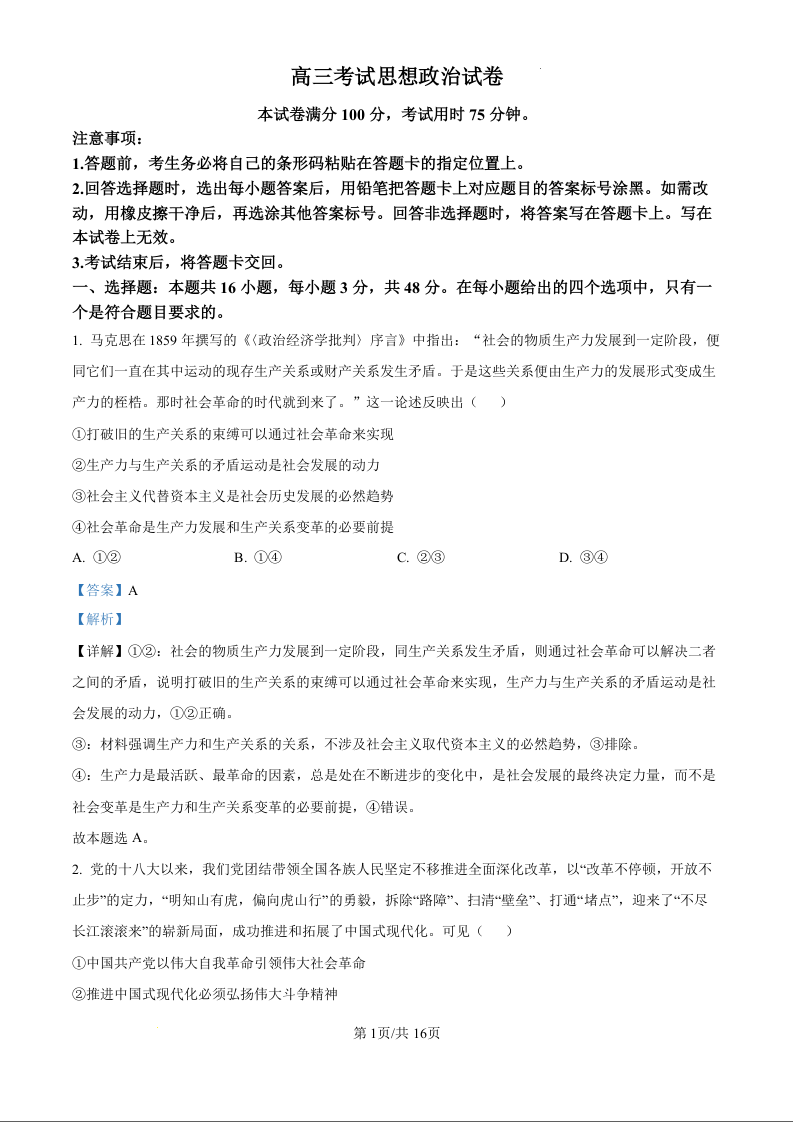 辽宁省辽阳市2025届高三上学期1月期末考试政治(精品解析版)